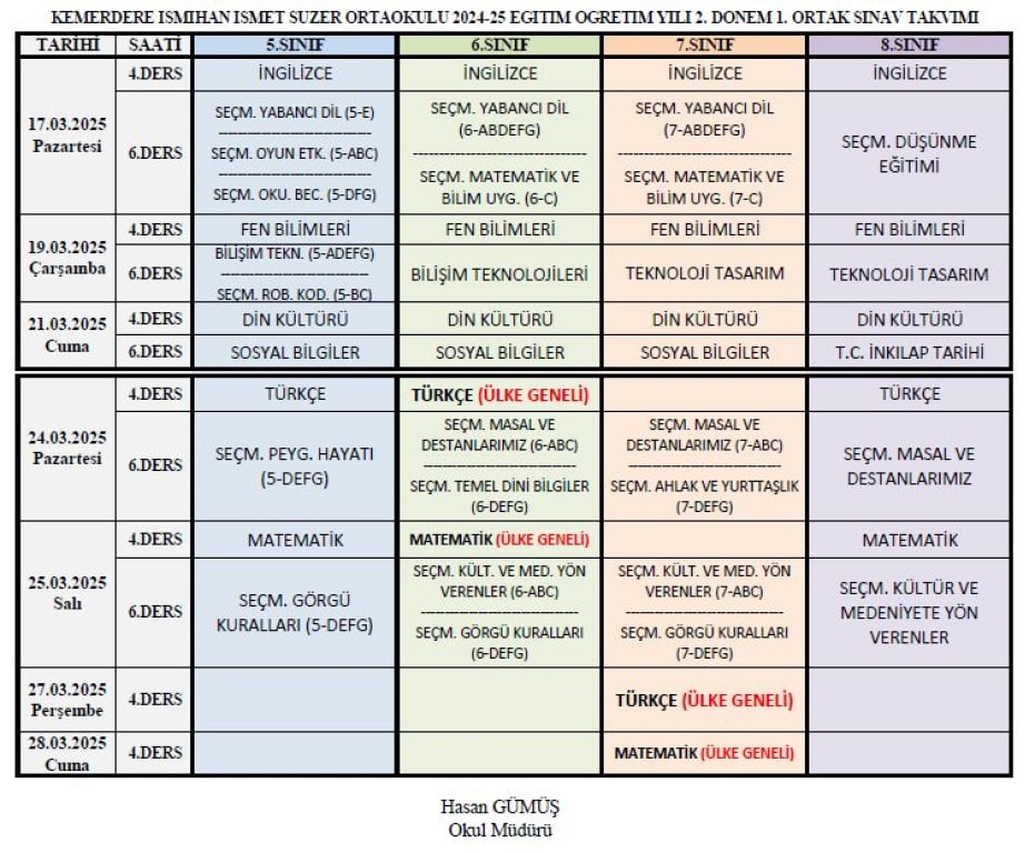 Sıvan takvimi aşağıdaki tabloda belirtilmiştir. Ayrıca e-okul'dan da sınav tarihleri incelenebilir.