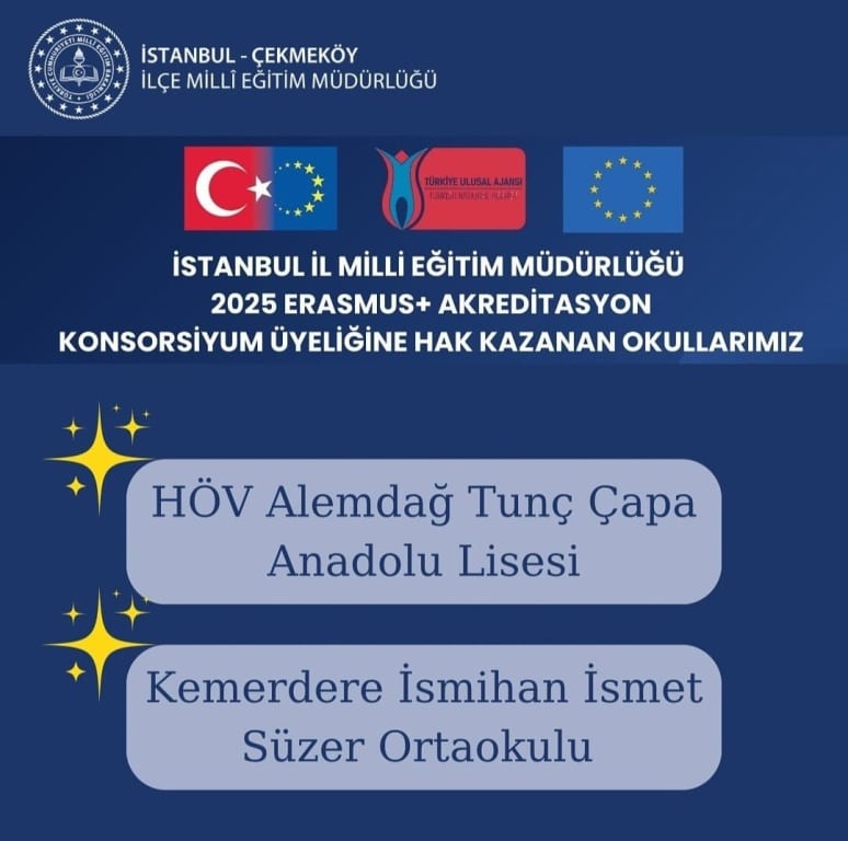 Okulumuz, İngilizce öğretmenlerimizden Saadet Bihter GÜRSES koordinatörlüğünde yürütülmekte olan KA210 Erasmus+ projemiz devam ederken şimdi de İstanbul İl Milli Egitim Müdürlügü bünyesinde Çekmeköy'de konsorsiyum üyeliğine hak kazanan iki okuldan biri olmuştur. Okulumuz daha çok öğrencimizin uluslararası faaliyetlerde okulumuzu ve ülkemizi temsil etmesi için yeni bir fırsat elde etmiştir